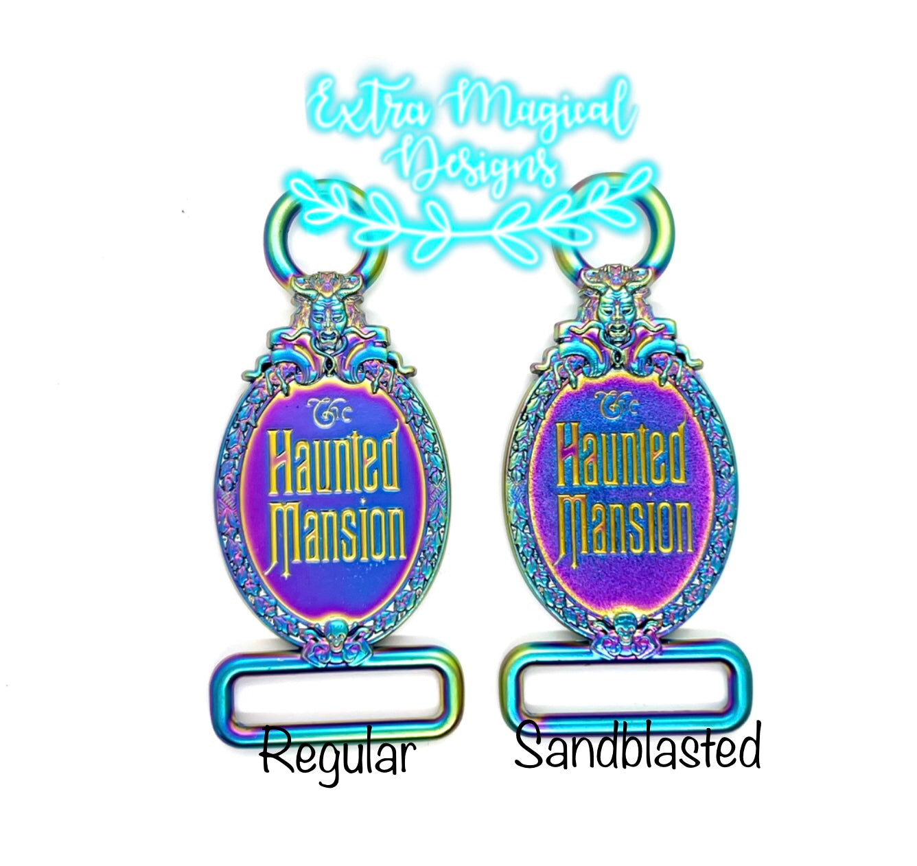 Please note the Gunmetal and Rainbow listed as Sandblasted have a different textured oval background. Please see photos.